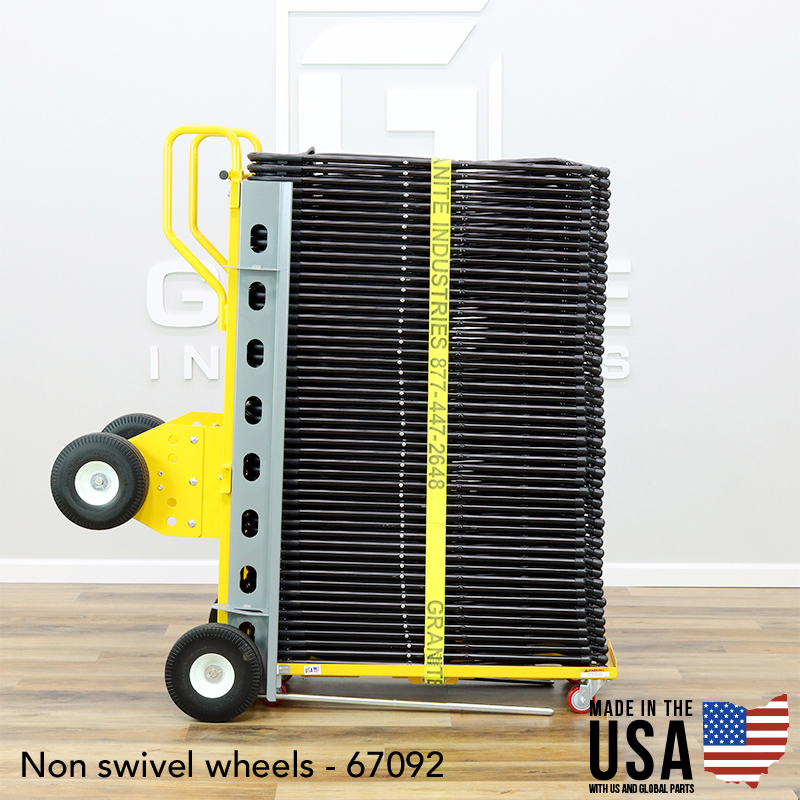 Need to haul folding chairs? The Mantis is your answer. Fenders adjust (wide or narrow) keep your stacks of chairs or dish racks in place. Step up your productivity with our line of Mantis Chair Pallets, made to fit both standard and fan back polyfold chairs. The Mantis also works with our dish rack dollies.