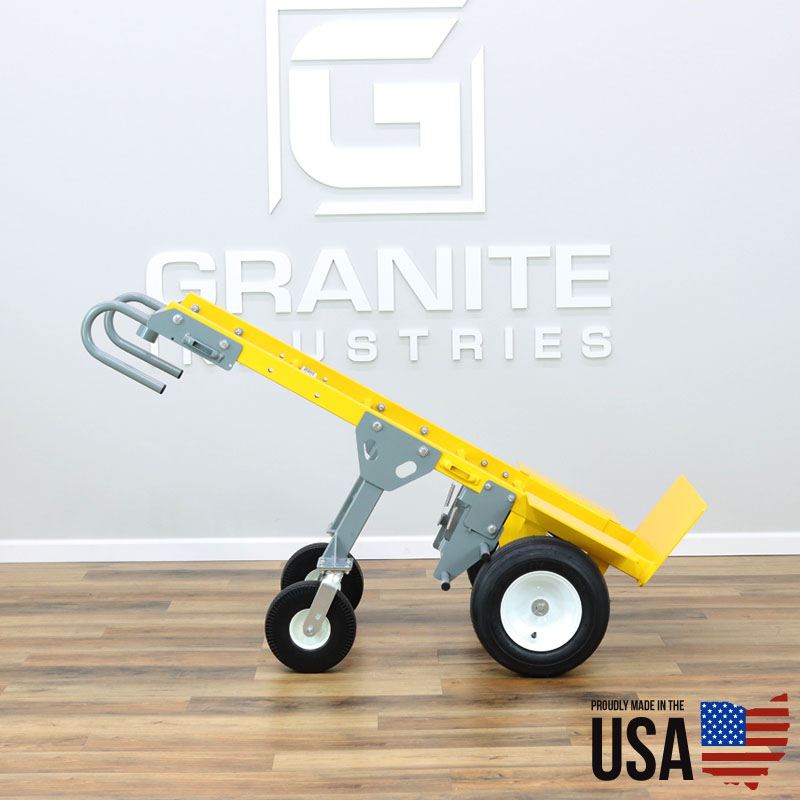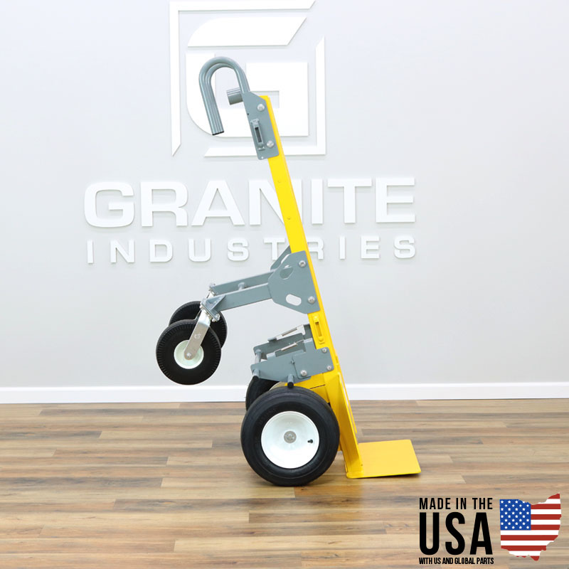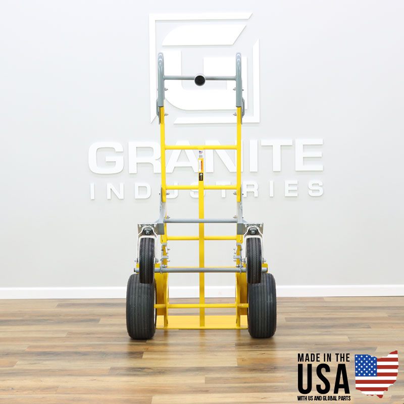 15″ flat free tires are ideal for loose and soft terrain such as sand or gravel. We’ve added 10″ flat free rear swivel casters for improved handling and maneuverability and installed a spring loaded foot brake.