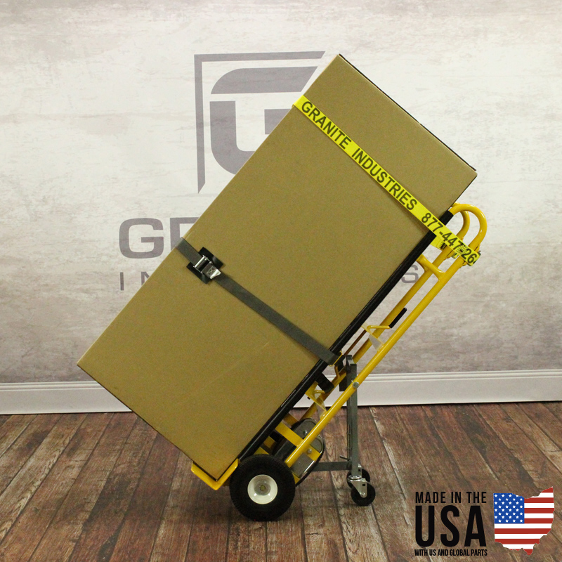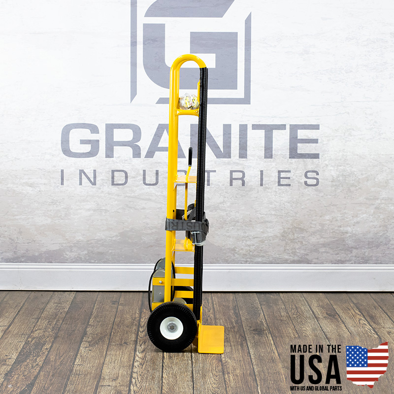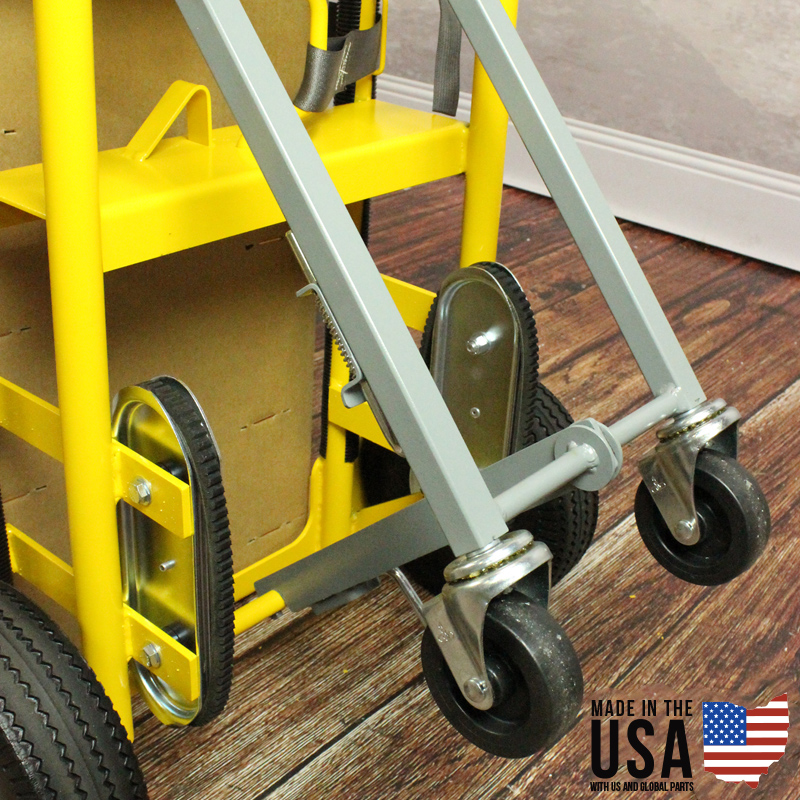 The Titan II comes standard with, 10 inch flat free tires, dual tie down straps, stair crawlers and a heavy duty 1-1/4 inch frame construction.